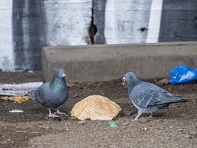 Bildunterschrift: Auch wenn sie ungesund und nicht artgerecht sind – Essensreste finden die Tauben jetzt kaum noch.…