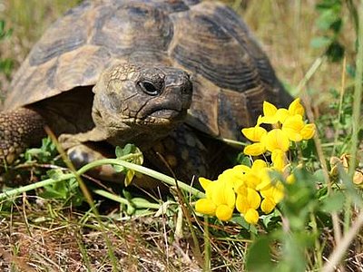 Deutscher Tierschutzbund rät vom Schildkröten Kauf ab. Eine gerettete Griechische Landschildkröte in der Reptilienstation des Tierschutzzentrum…