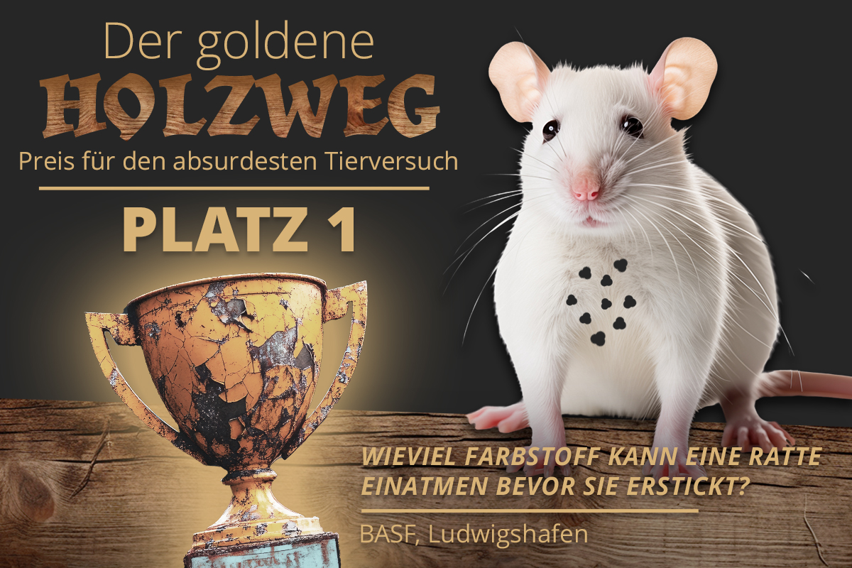 „Dieser Versuch zeigt, wie Tiere in grausamen Versuchen leiden und sterben – nicht etwa zum Wohl des Menschen, sondern nur, um regulatorischen Anforderungen zu genügen“, so Walter. „Um ihre Produkte vermarkten zu können, sehen sich Firmen genötigt, die Versuche durchzuführen, auch wenn die Ergebnisse für den Menschen nicht relevant sind. Somit hat dieser Versuch – stellvertretend für zahlreiche weitere regulatorisch vorgeschriebene Tierversuche – den Negativpreis ‚Der goldene Holzweg 2025‘ mehr als verdient.“