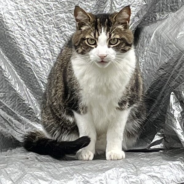 Farbe: | Schwarz-grau getigert mit weißem Bauch und Pfoten |
