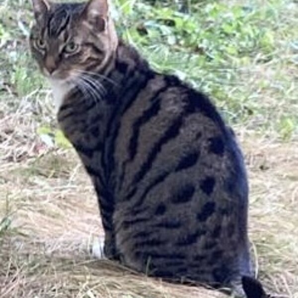 Beschreibung | Besondere Merkmale: Vorderseite am Hals große weiße Fellfläche; weiße Felltatzen; sonst dunkles Fell; Oberkörper getigert, Unterkörper gepunktet |