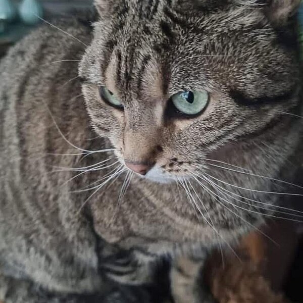Farbe: | Braun-getigert, grünliche Augen |
